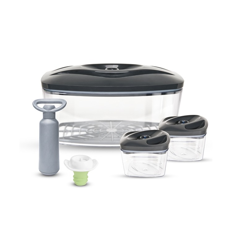 Żywność przechowywana w pojemnikach próżniowych pozwala zachować smak i świeżość pięciokrotnie dłużej niż w przypadku tradycyjnego przechowywania w lodówce, w opakowaniach z papieru lub folii. Jest to możliwe, ponieważ w pojemniku próżniowym żywność nie ma kontaktu z powietrzem, a więc nie utlenia się, a także pojemniki próżniowe z pompką uniemożliwiają dostanie się bakterii czy pleśni. Można je nabyć w różnych kształtach i kolorach: okrągłe, w kształcie miski, kwadratowe, prostokątne, a także o różnej pojemności, pojedynczo lub w zestawach. Mogą być wykonane z plastiku lub szkła.